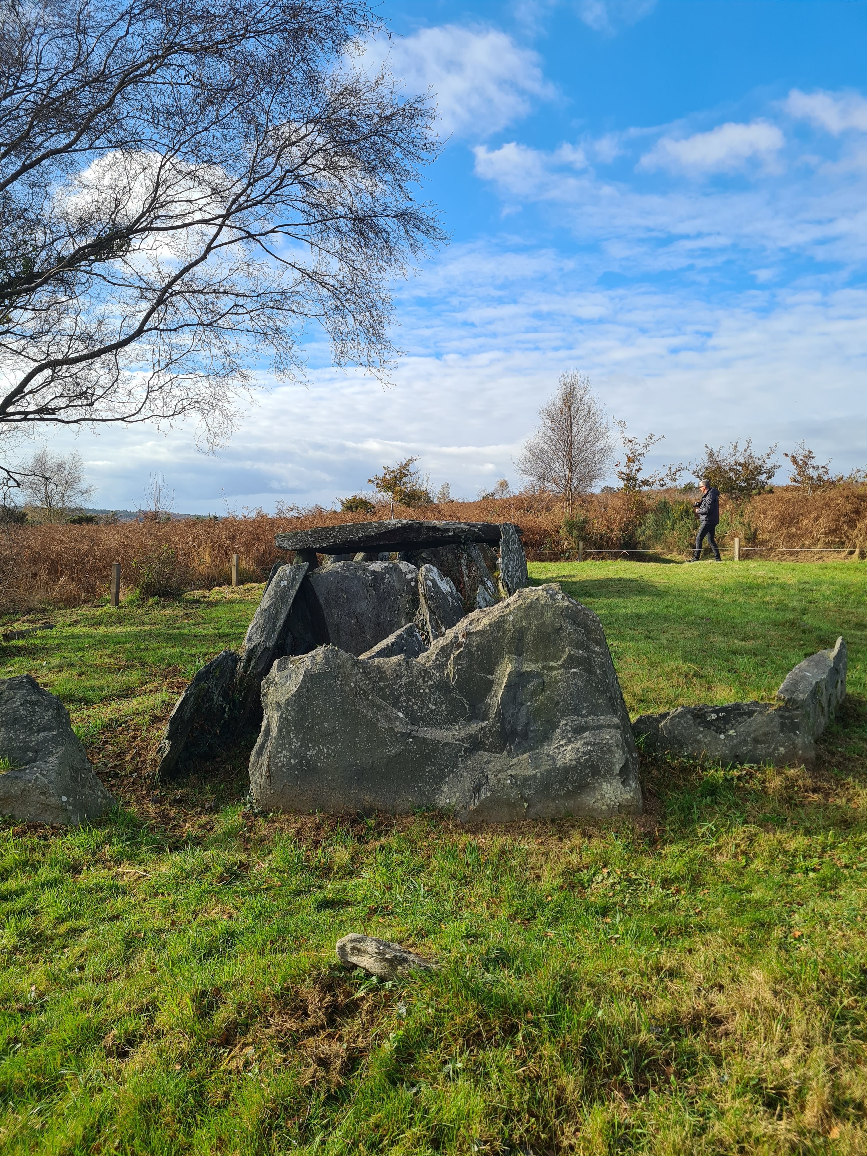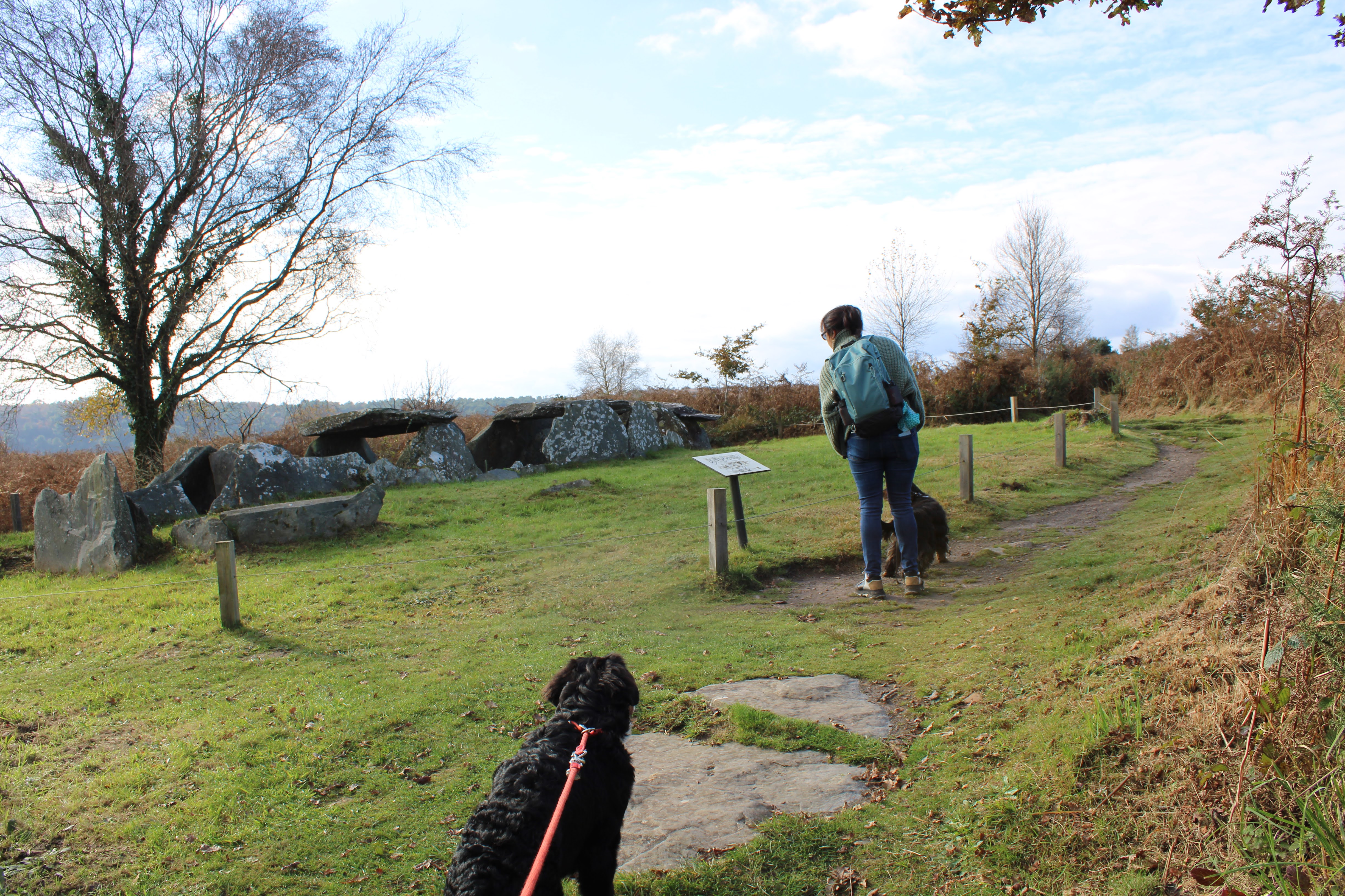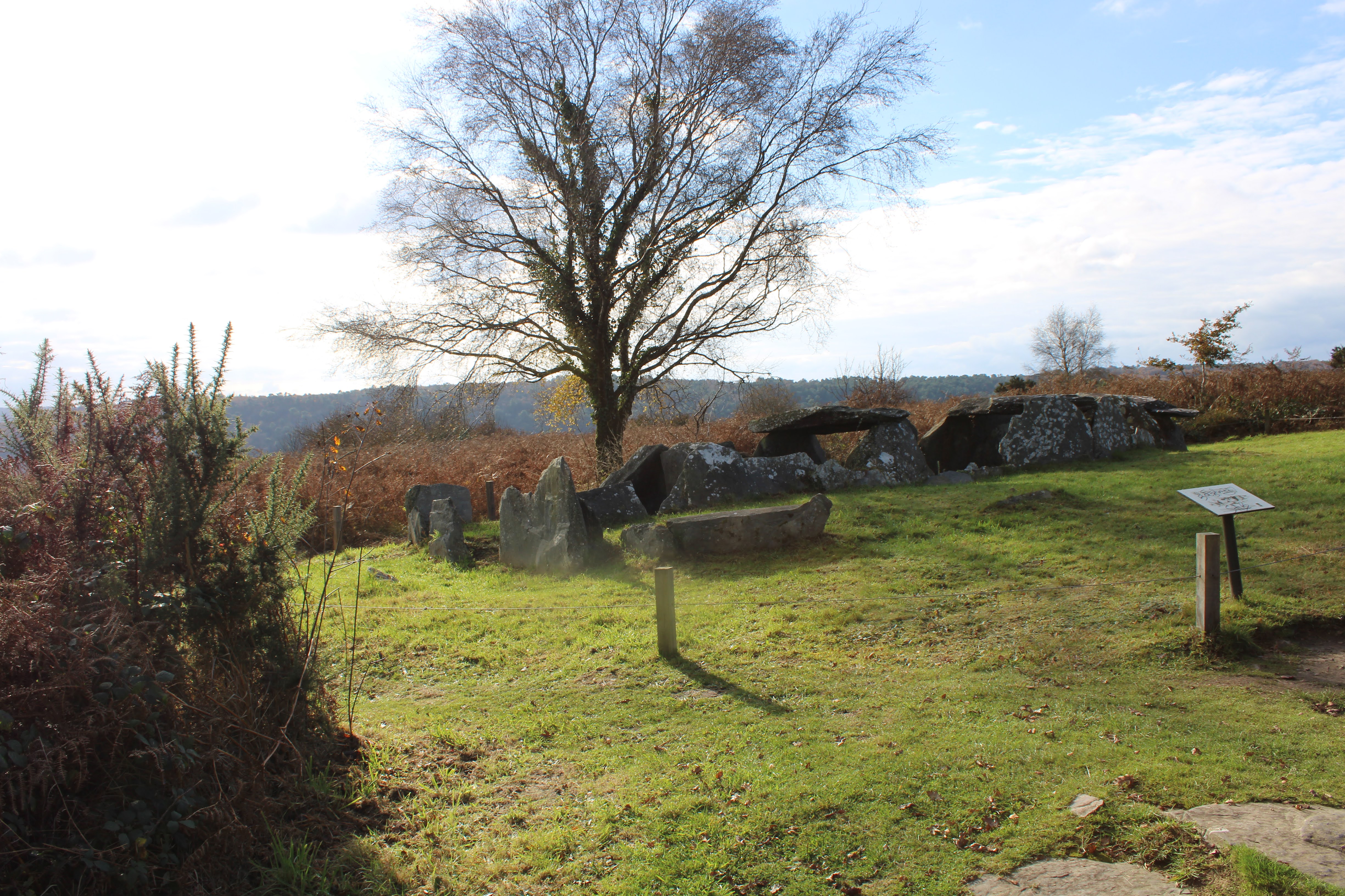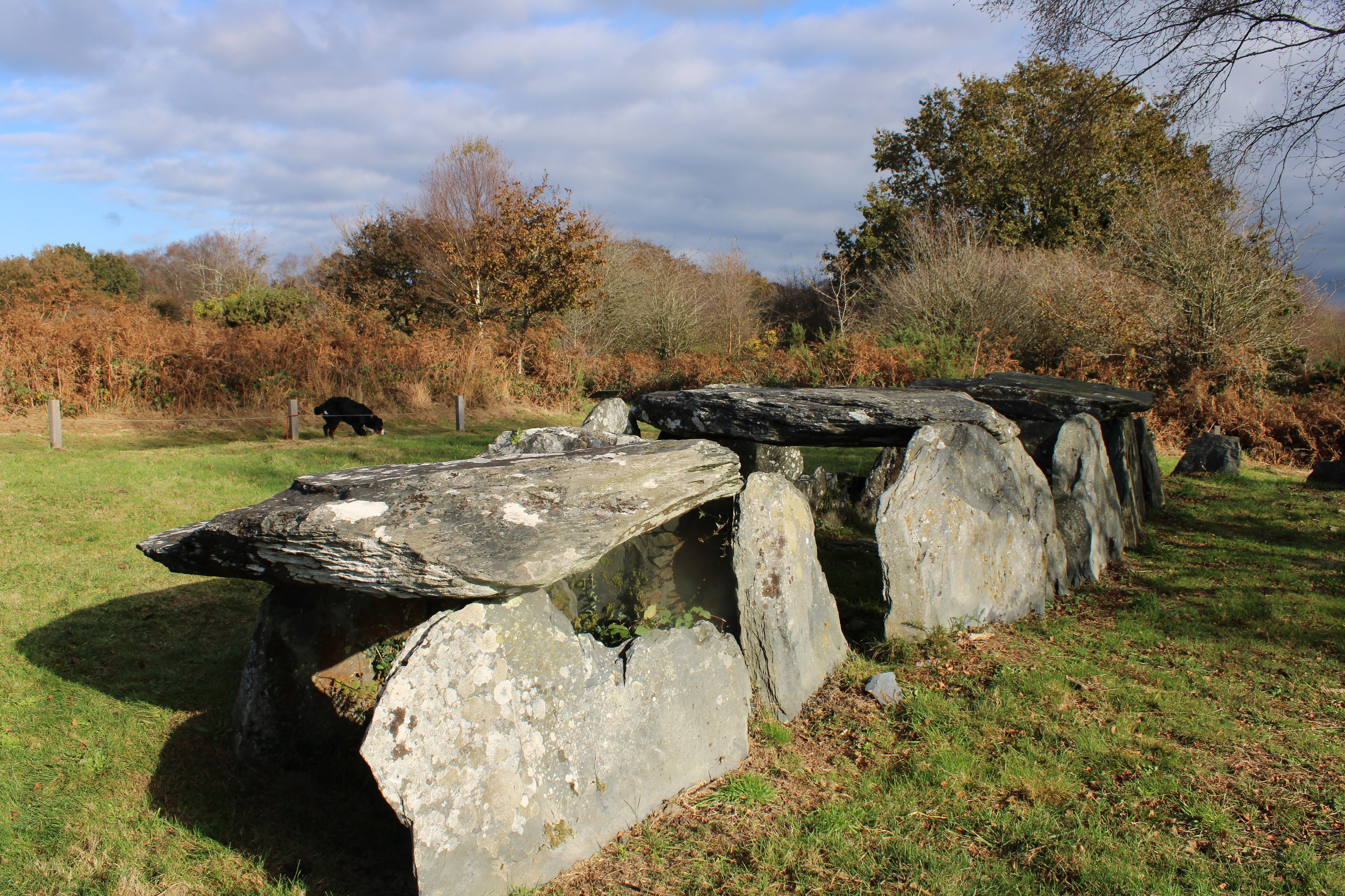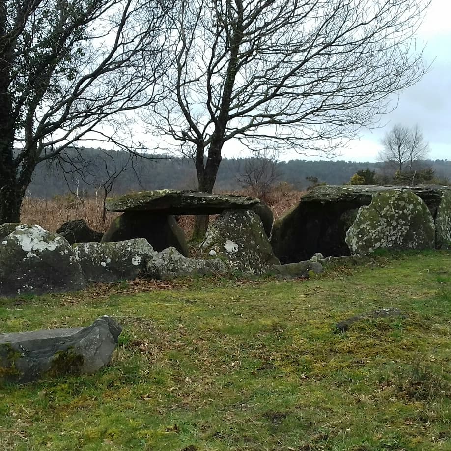 Vestiges impressionnants de trois tumulus celtiques sur le plateau au-dessus du canal Nantes - Brest. Au-dessus de l'ancienne abbaye de Bon Repos. Directement sur le GR37. Un petit chemin circulaire mène aux trois tombes.