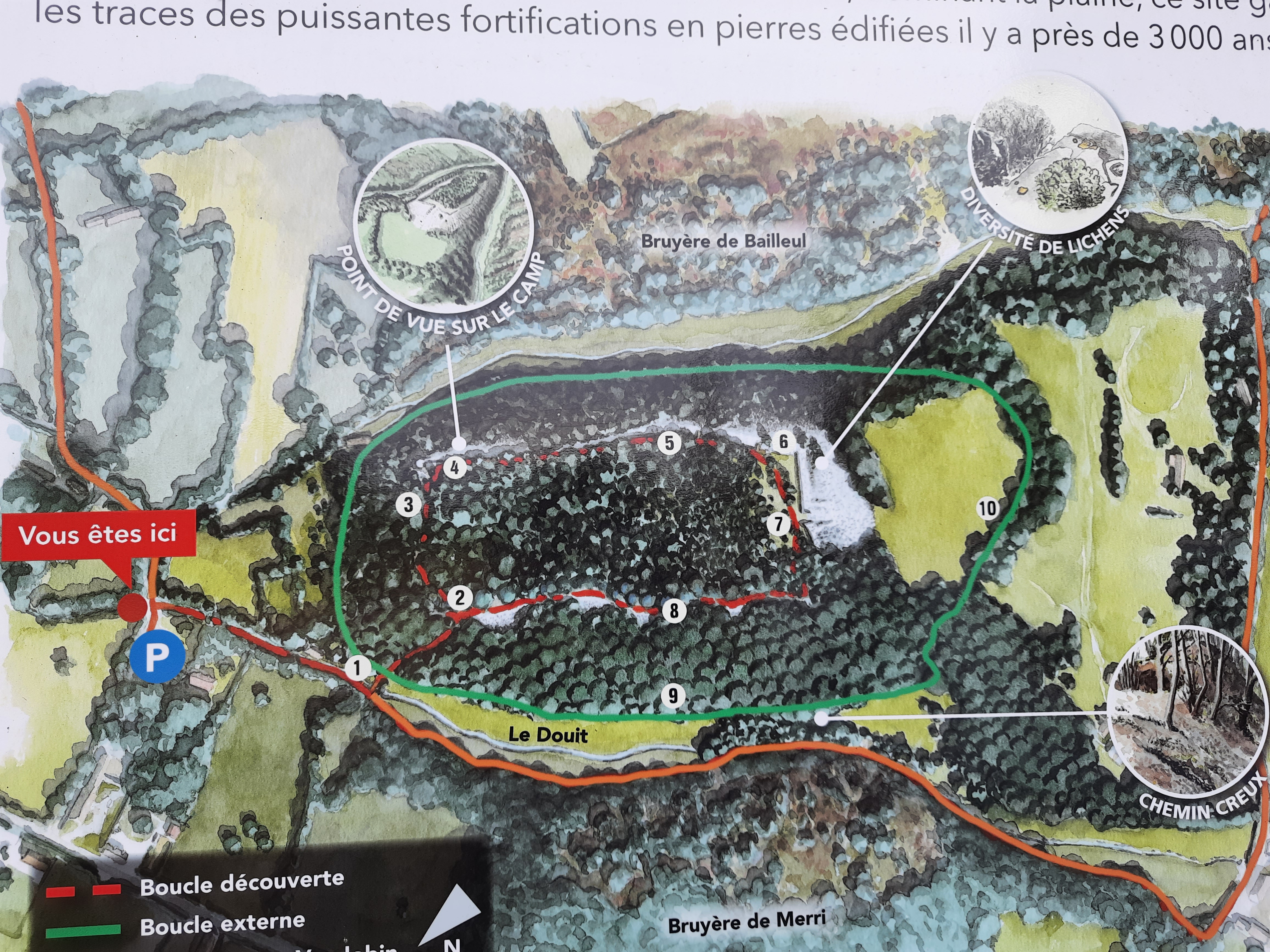 Beau site gaulois,il est libre d accès (pensez à prévoir les chaussures adaptées, les chemins sont balisés, mais nature) des panneaux explicatif sont disposés sur l ensemble des chemins (un intérieur du camp et un extérieur).