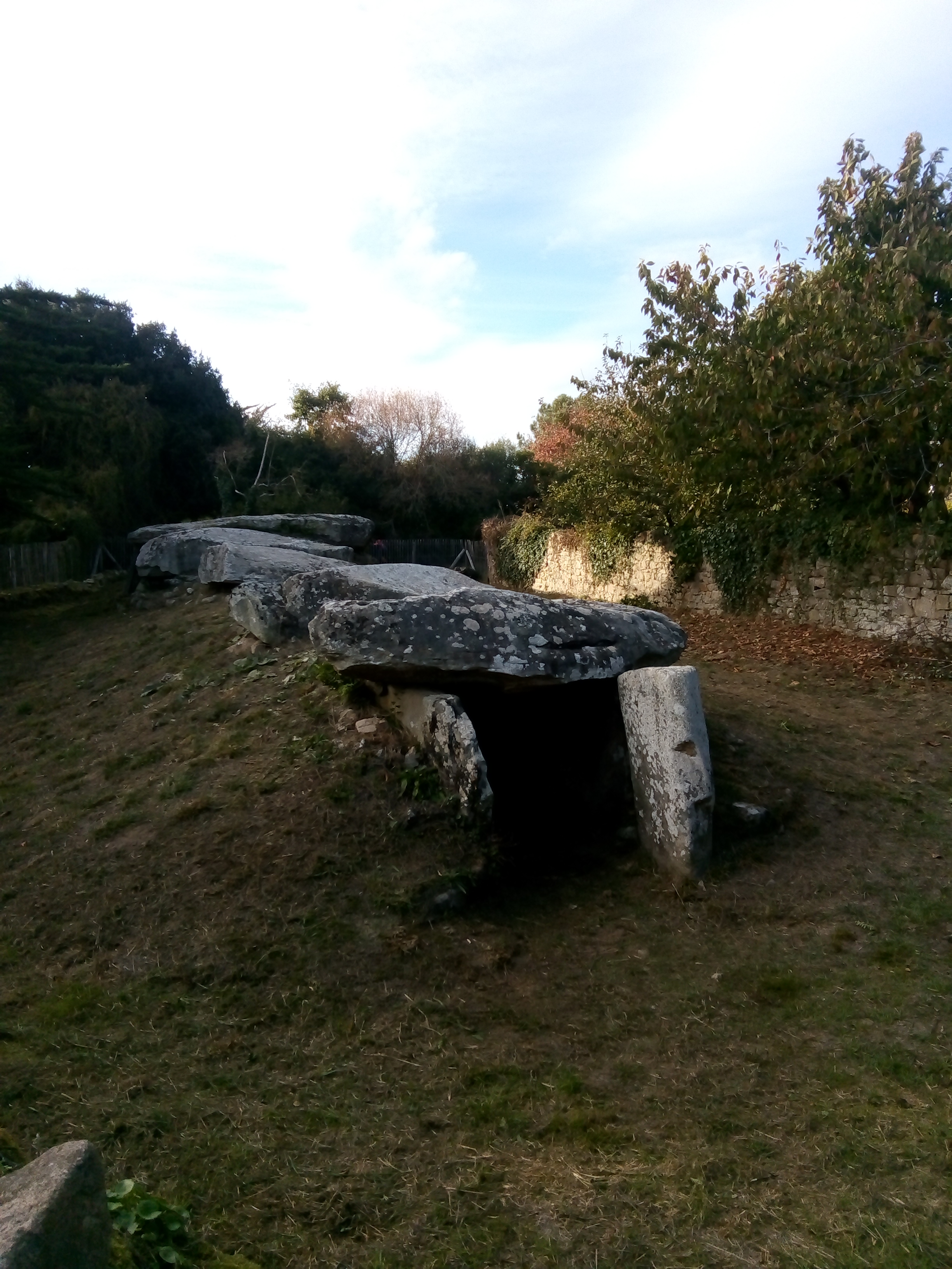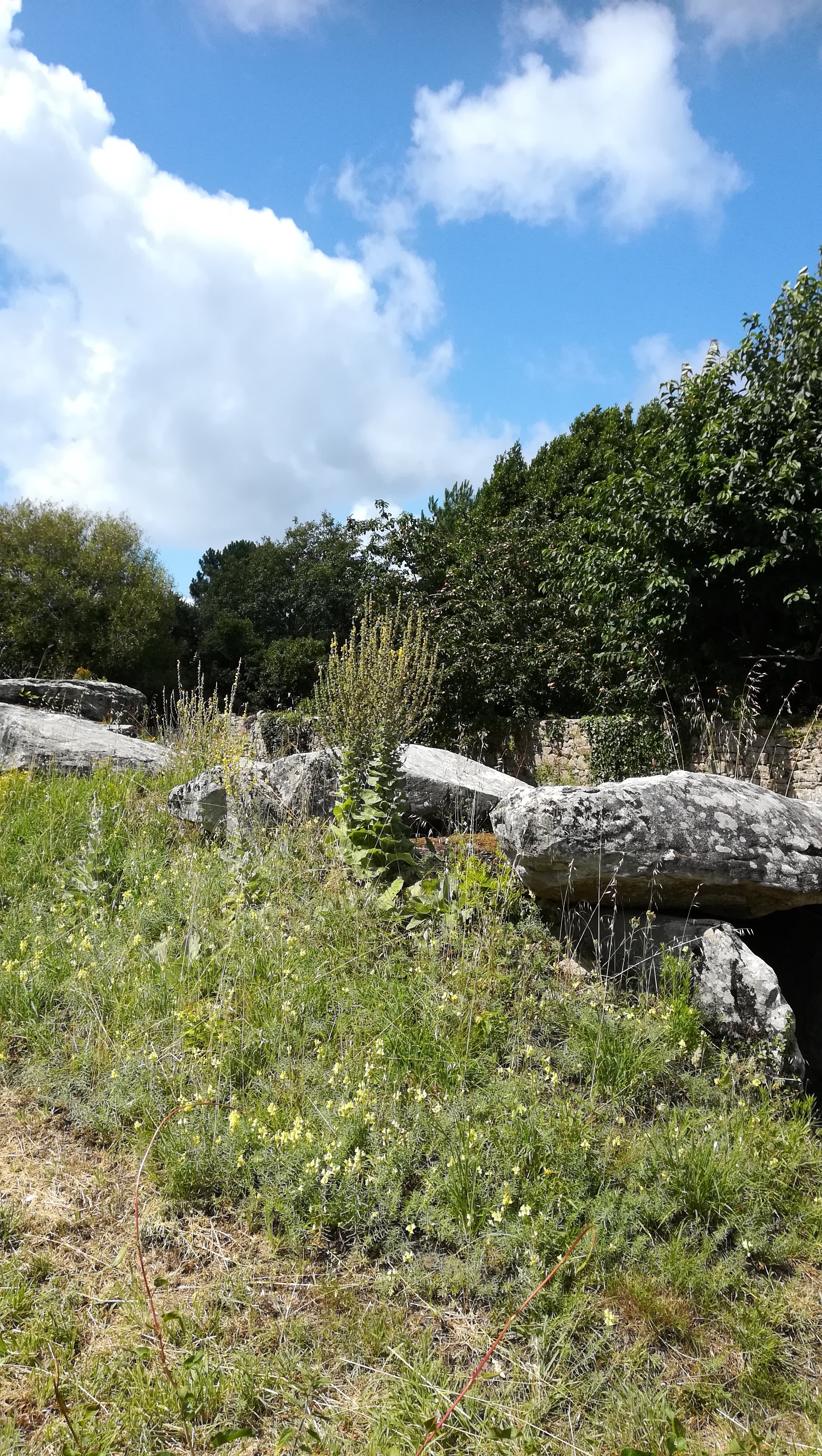 Dolmen de Mané-Rethual #Iwaza Pèlerinage 2 roque française maria chou frisé Dolmen et menhir rutuel de Manet Dolmen de Mané-Rethual et menhir Aussi néolithique Profondeur 3,4 m Hauteur 1,2 m Un menhir bifurqué est également situé à proximité du dolmen. Il y a un dolmen dans un terrain vague à l'arrière d'un quartier résidentiel, et un menhir à côté d'une maison. J'ai dédié le pilier de lumière Awanouta Katakamuna.