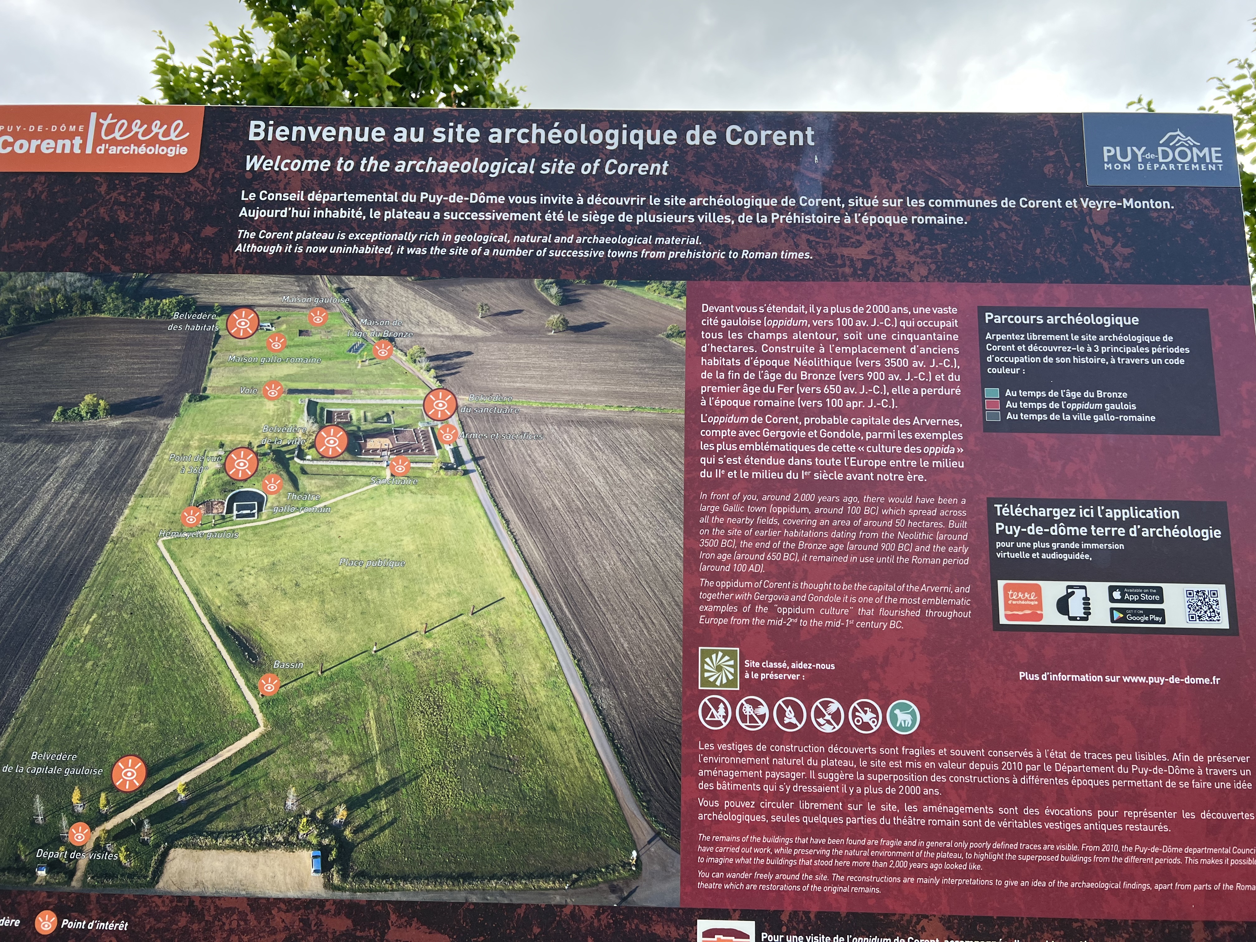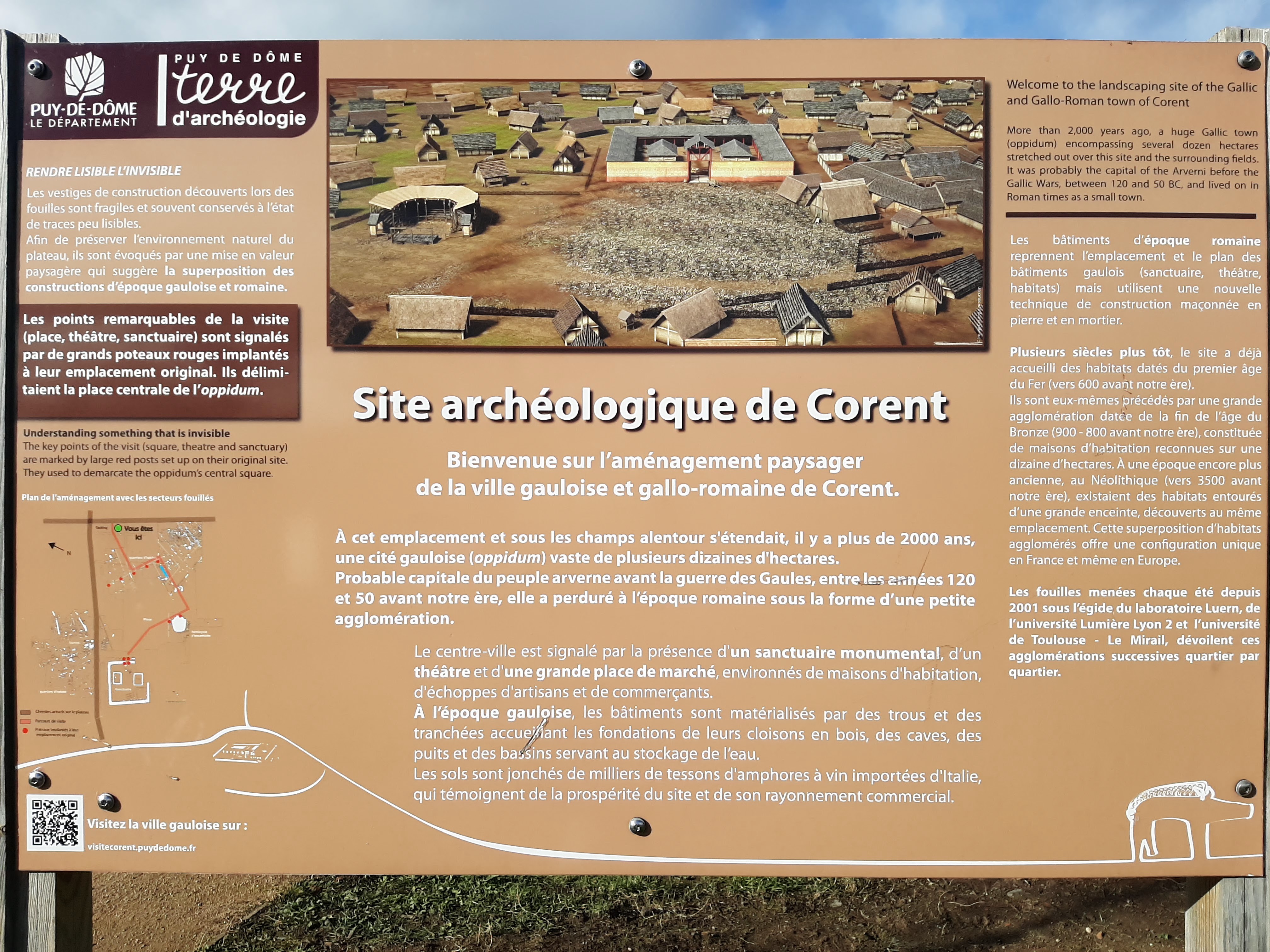 C'est une balade rafraîchissante. Pour l'aspect purement archéologique, on pourra compléter la visite par la conférence Fin de la protohistoire ou débuts de la romanisation ?, qui traite longuement du site de Corent (en accès libre sur le site du Collège de France).