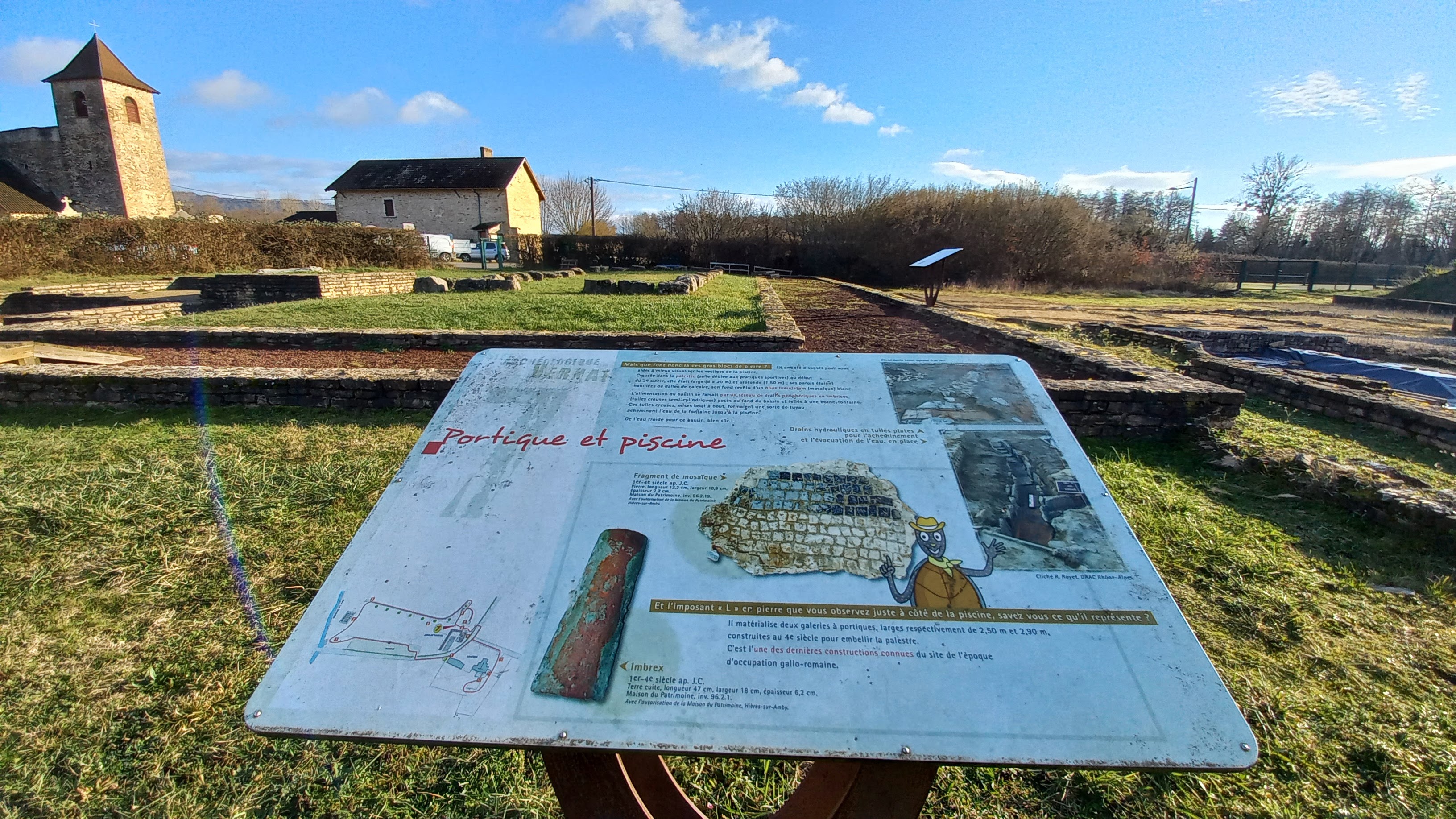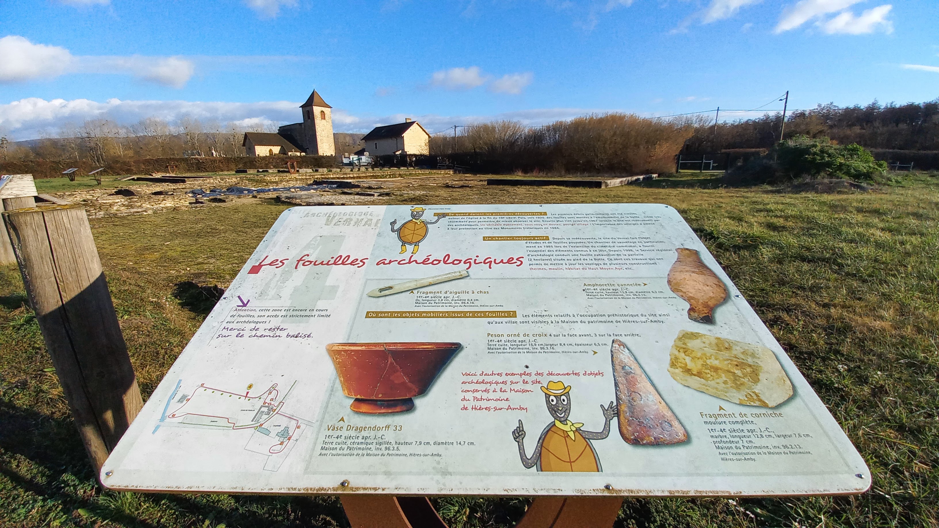 Site qui me fait penser à celui de Larina ( en plus petit) L'entrée est en face du cimetière de St Romain de Jalionas Des explications sur des panneaux Un petit jardin avec un joli puit Parking à côté du cimetière